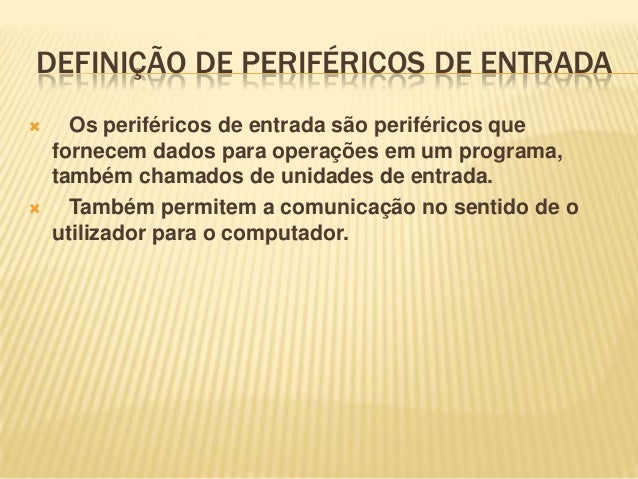 Impressoras digitalizadores leitores e gravadores drives de cds e dvds leitores de cartões de memória e disquetes mouses teclados câmeras de vídeo entre outros.