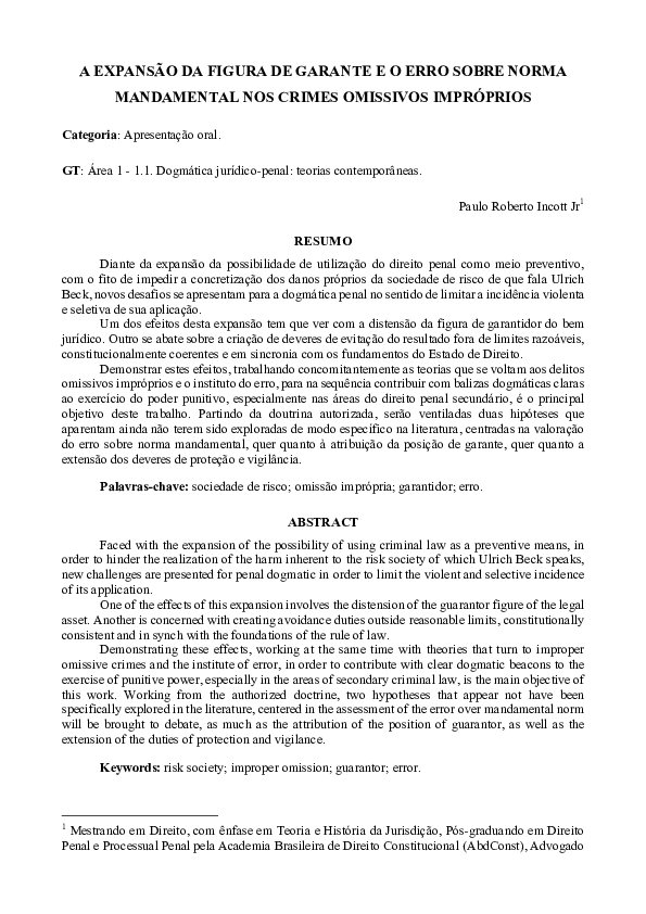 Pdf A Expansao Da Figura De Garante E O Erro Sobre Norma