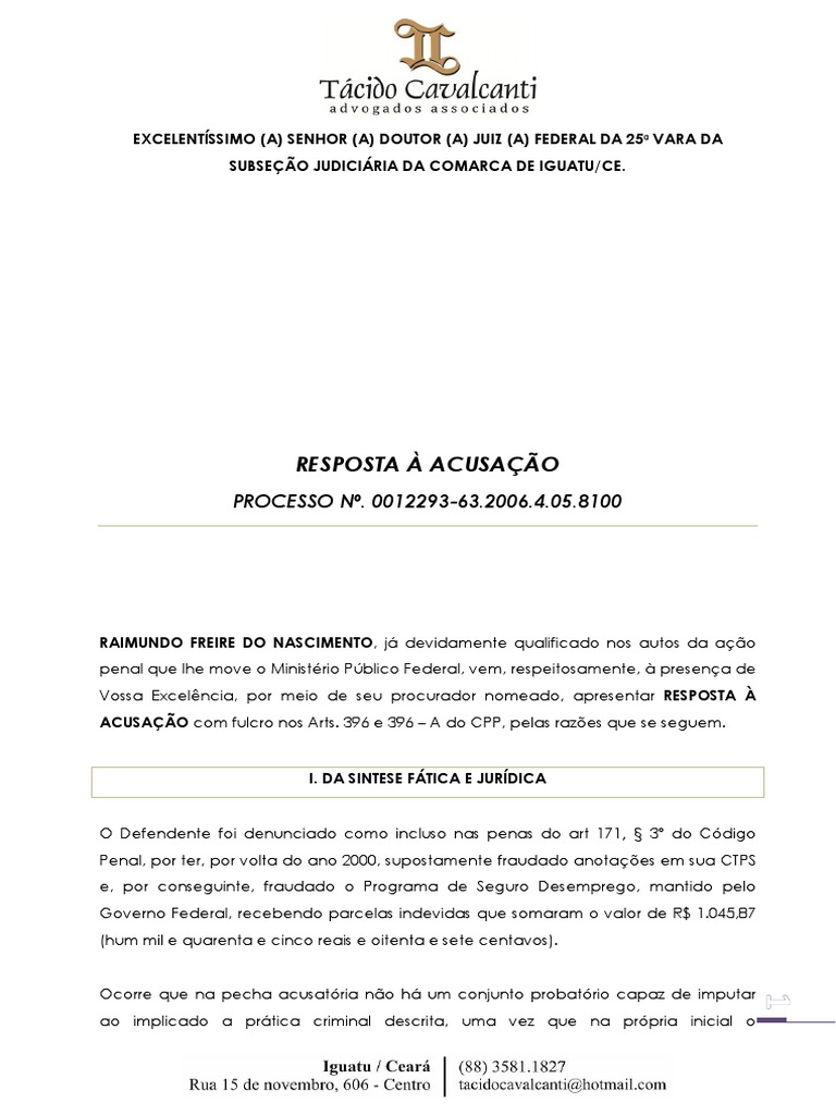 Dados sobre Exemplo De Resposta Ao Ministerio Publico.