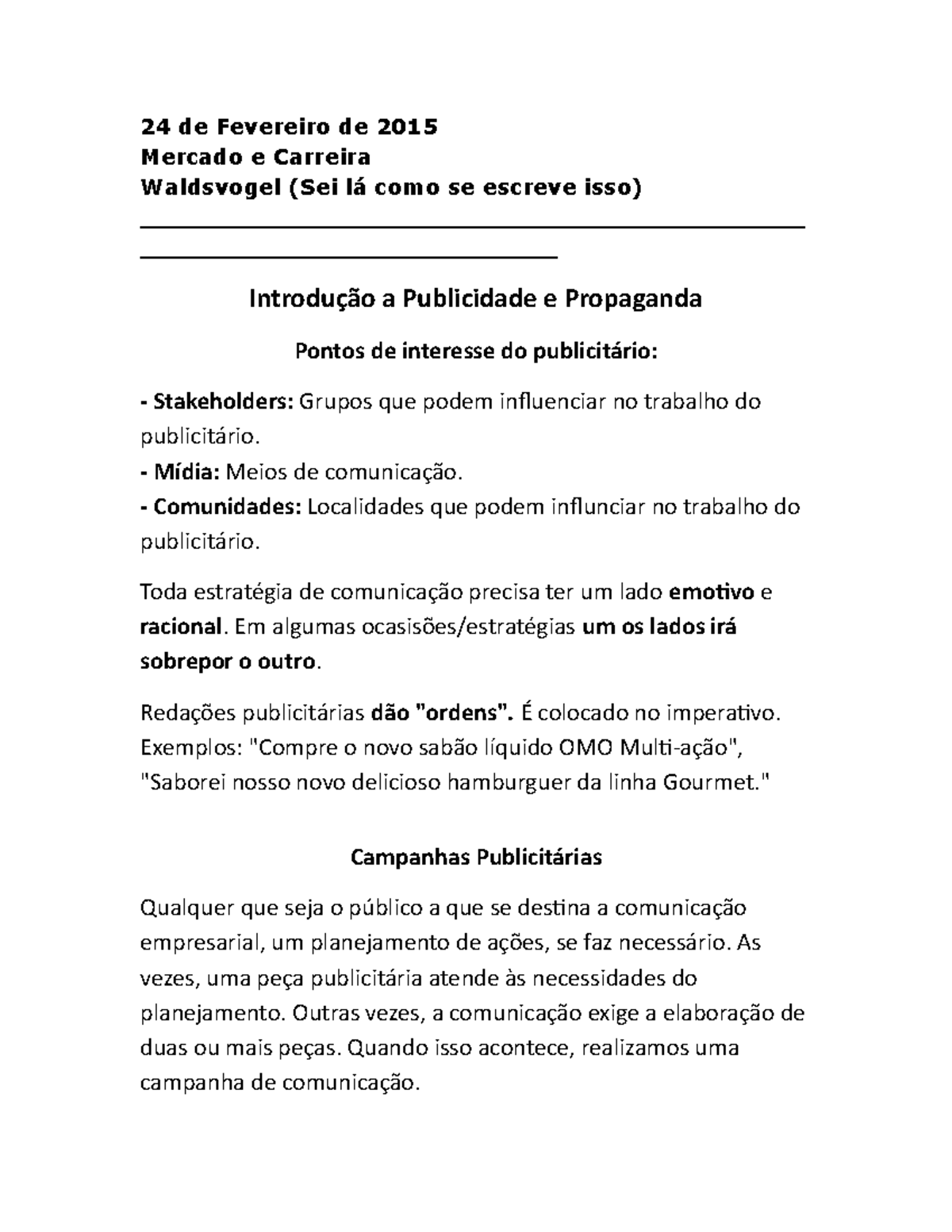 Introducao A Publicidade E Propaganda Ecs125 Unigranrio Studocu