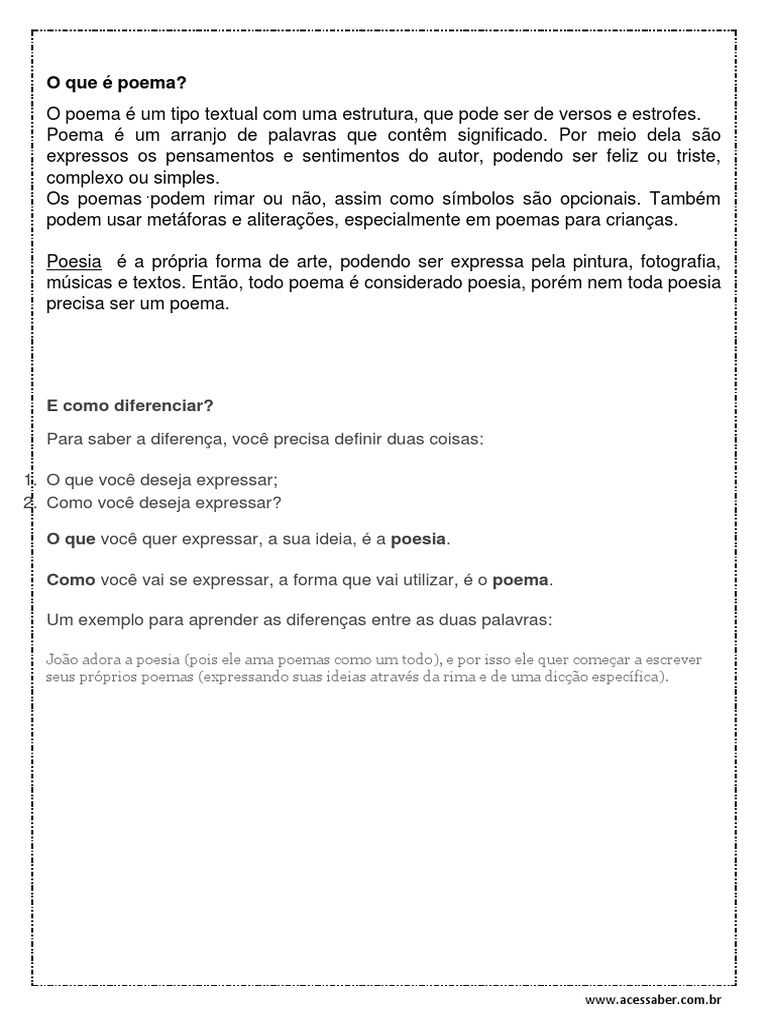 Admin coleta de fontes relacionadas ao compartilhamento Diferença Entre Poema E Poesia Com Exemplos.