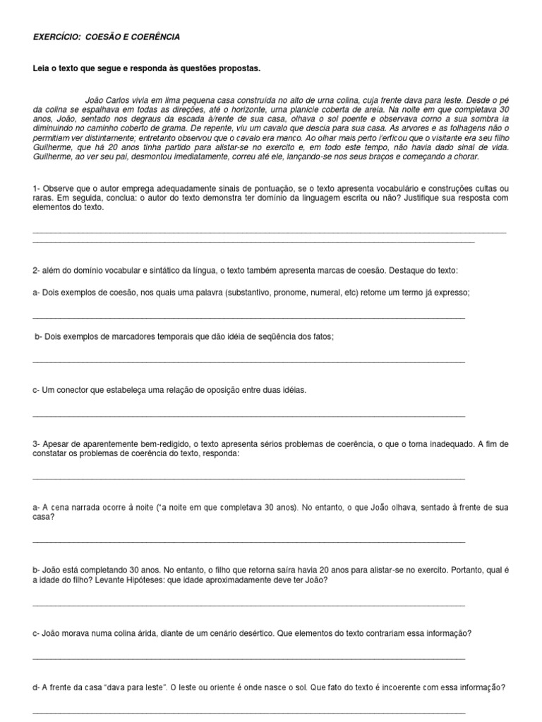 Exercicios De Coesao E Coerencia Textual Gabarito