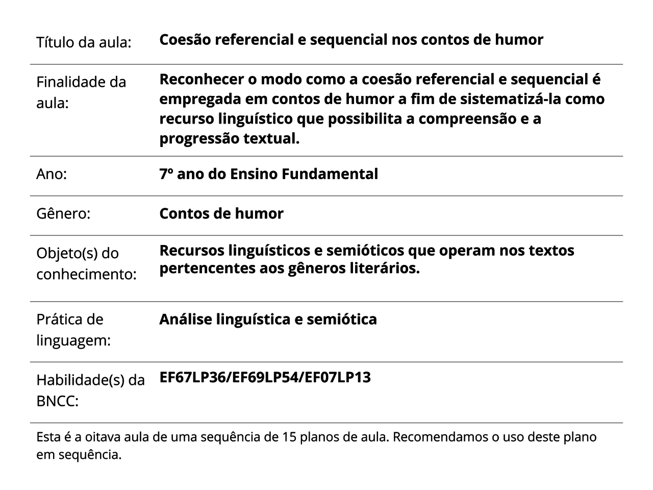 Plano De Aula 7º Ano Lingua Portuguesa Elementos Da Coesao