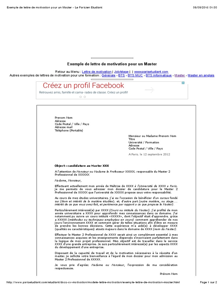 Exemple De Lettre De Motivatifgbon Pour Un Master Le Parisien