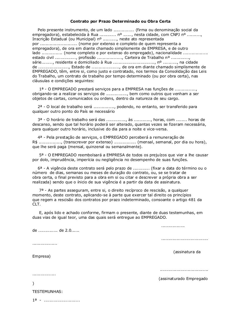 Contrato Prazo Determinado Ou Obra Certa
