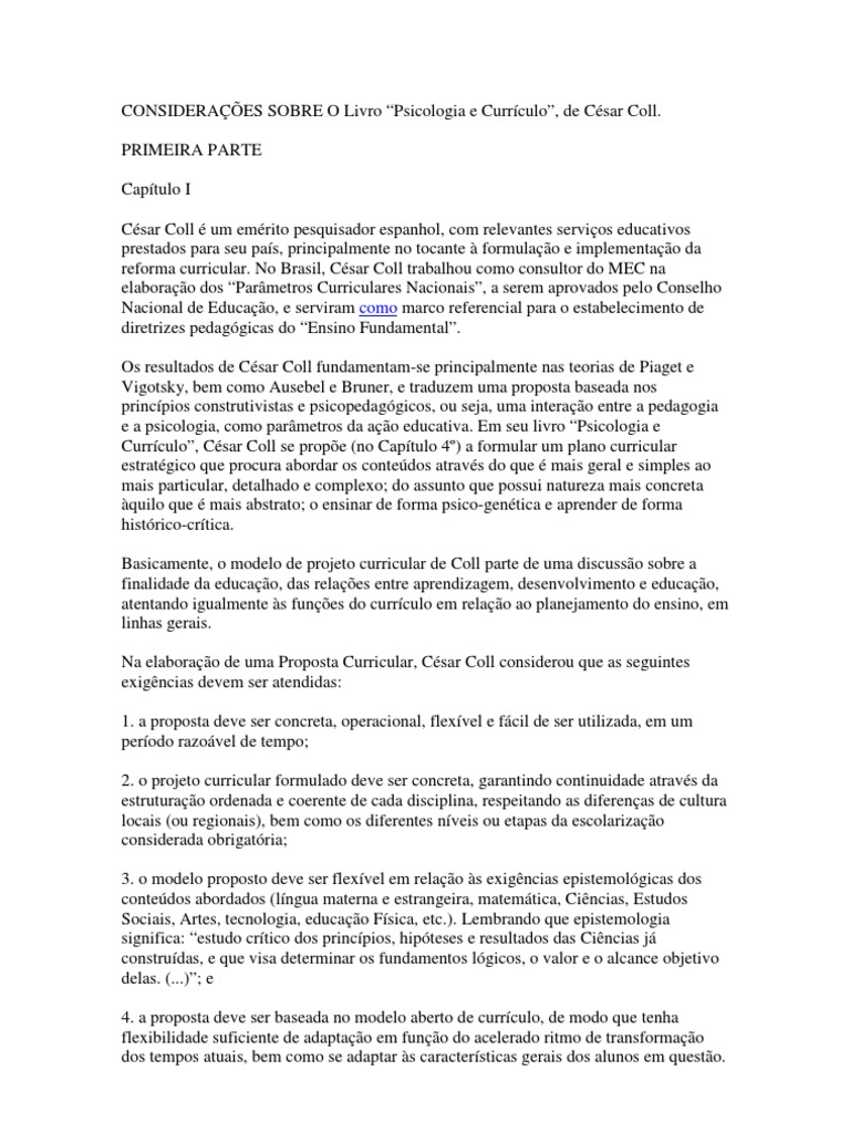 Psicologia E Curriculo Cesar Coll Pedagogia Aprendizado