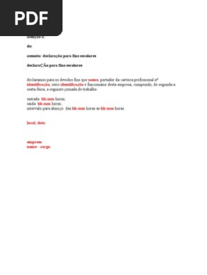 Coleção completa Exemplo De Declaração De Trabalho Para Fins Escolares.