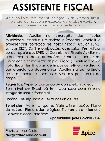 Emprego Para Assistente Fiscal 10 10 17 Emprego Mais Go