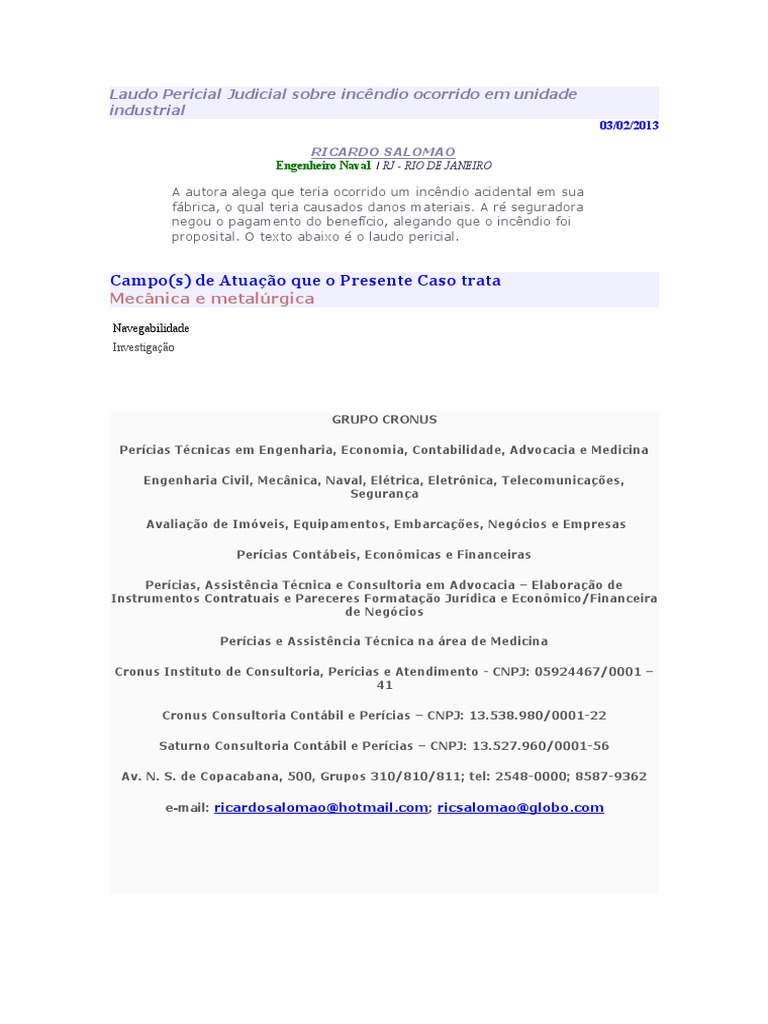Assim, as informações que podemos compartilhar sobre exemplo de laudo pericial de engenharia mecanica. Obrigado por visitar o blog Novo Exemplo 05 January 2019.