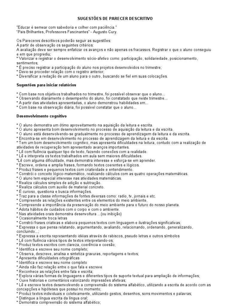Detalhes detalhados sobre Exemplo De Parecer Descritivo Ensino Fundamental.