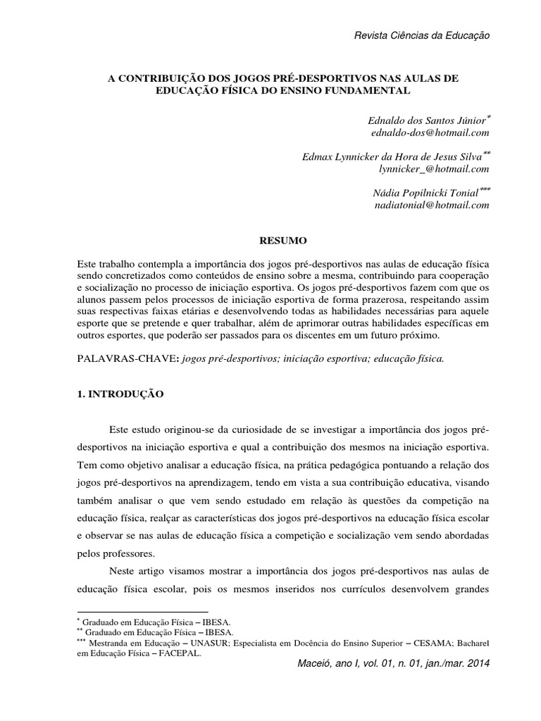 A Contribuicao Dos Jogos Pre Desportivos Nas Aulas De Edf