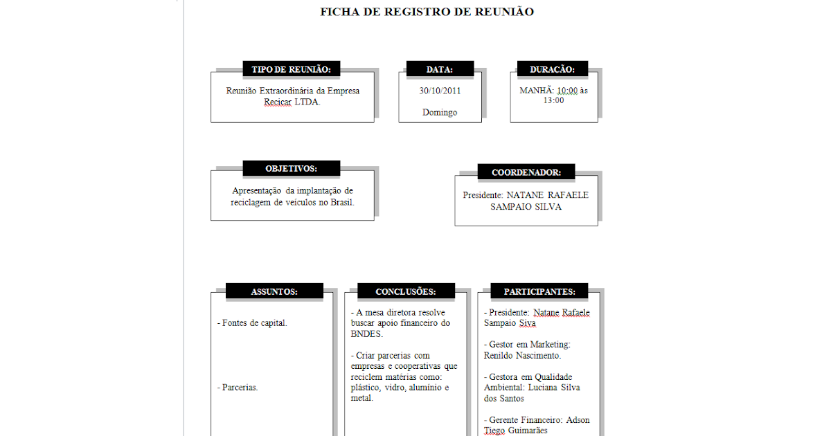 Diversas informações sobre Ficha De Registro De Reunião Exemplo.