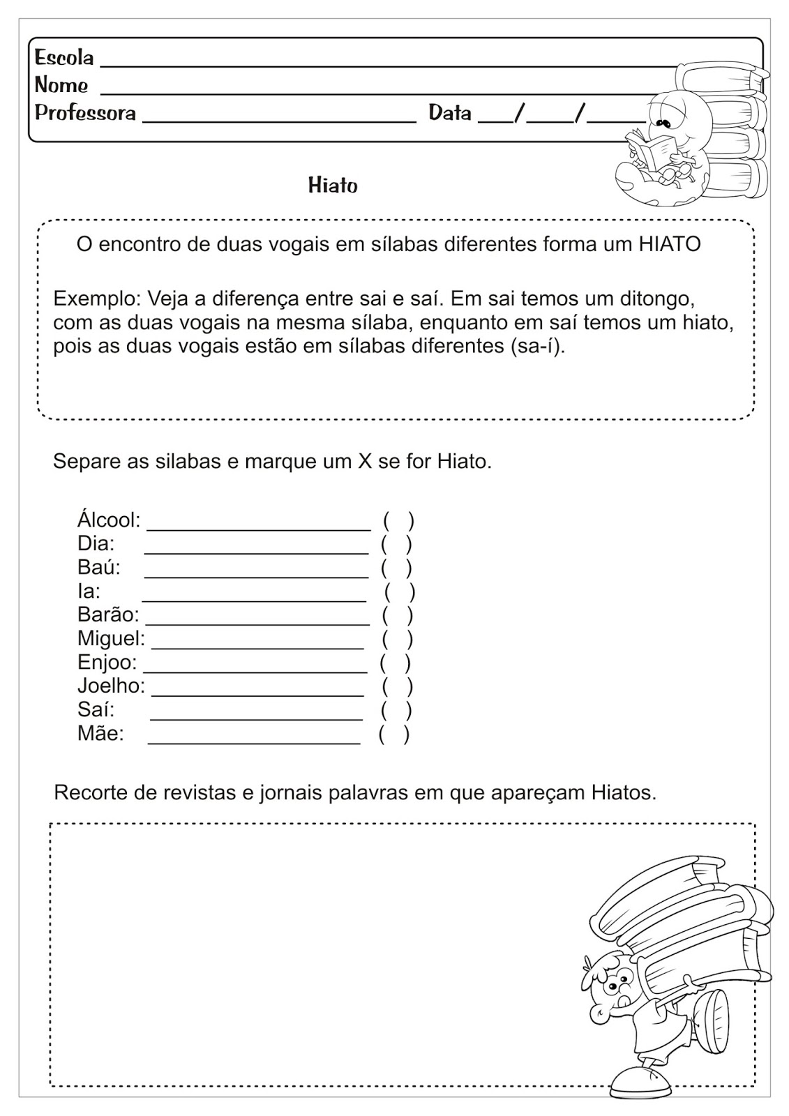 Veja mais alguns exemplos de hiato.