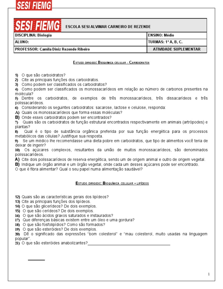 Estudo Dirigido Carboidratos E Lipideos 2018 2 Baixar Pdf De