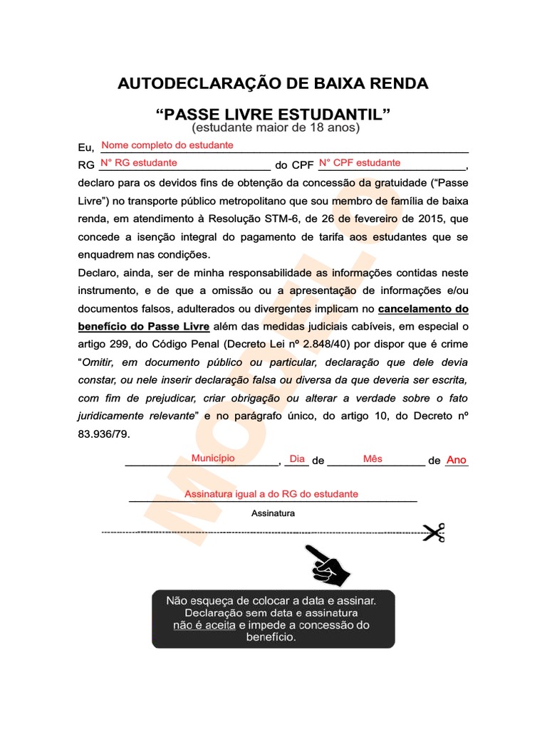 6 Autodeclaracao De Baixa Renda Aluno Maior De 18 Anos