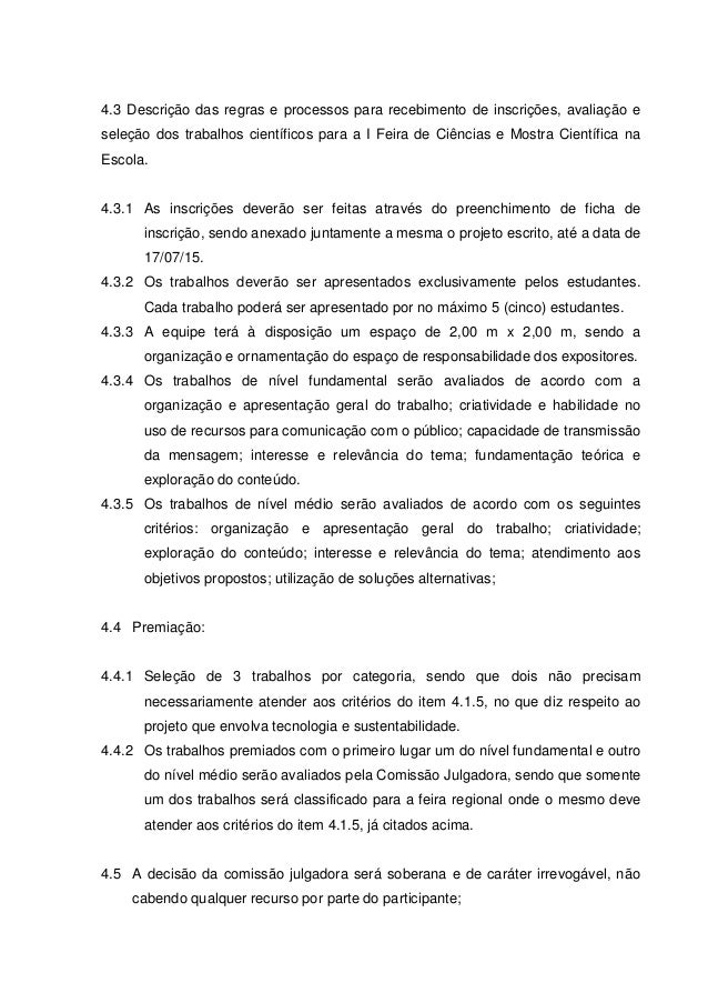 Projeto Geral I Feira De Ciencias E Mostra Cientifica Na Escola