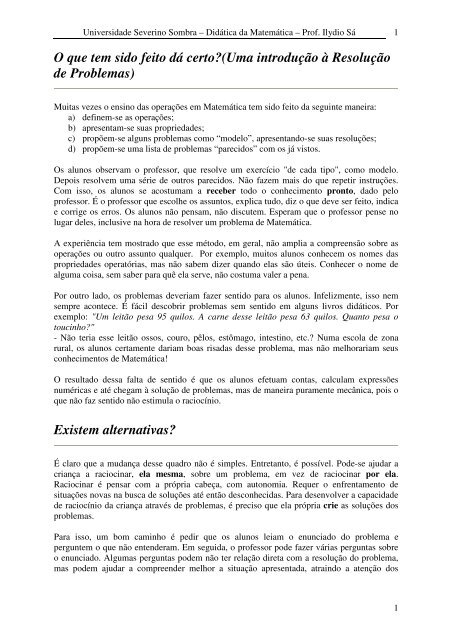 Com mais de 40 anos de dedicação a didática da matemática brosseau desenvolve seus trabalhos de investigação no centro de observação e pesquisa em educação matemática mais uma de suas criações realizada em 1972. Em outras o aluno precisa analisar o enunciado e identificar o que está sendo pedido pois não há indicação clara sobre o conteúdo necessário para resolver a questão.