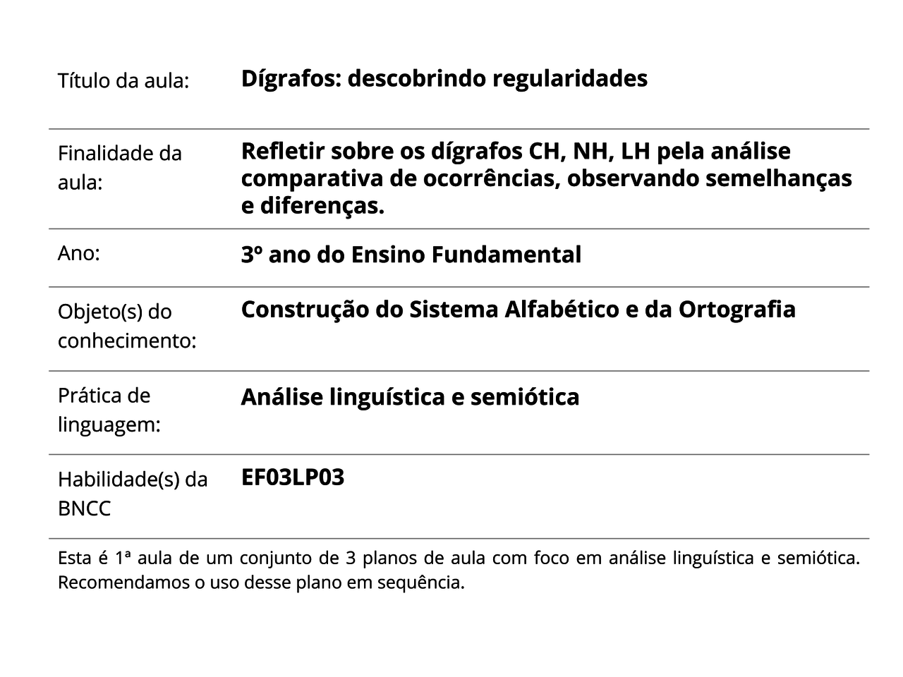 Plano De Aula 3º Ano Lingua Portuguesa Digrafos Descobrindo