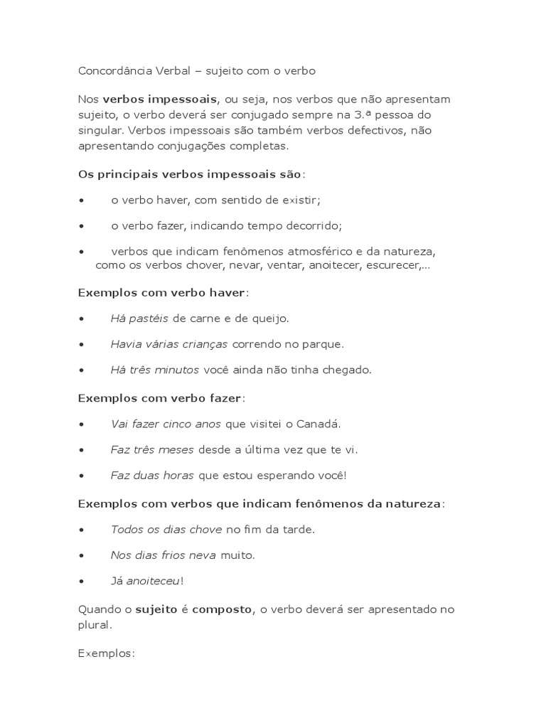 Verbos Impessoais Brasil Escola