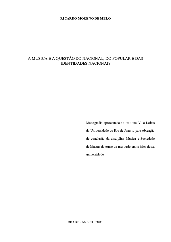 Pdf A Musica E A Questao Do Nacional Do Popular E Das
