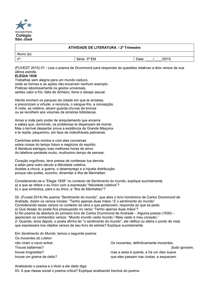 Fuvest 2015 01 Leia O Poema De Drummond Para Responder