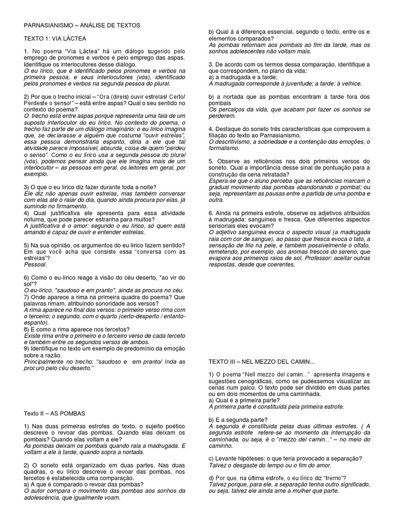 Parnasianismo Textos Impressao Gab Realismo Artes Poesia