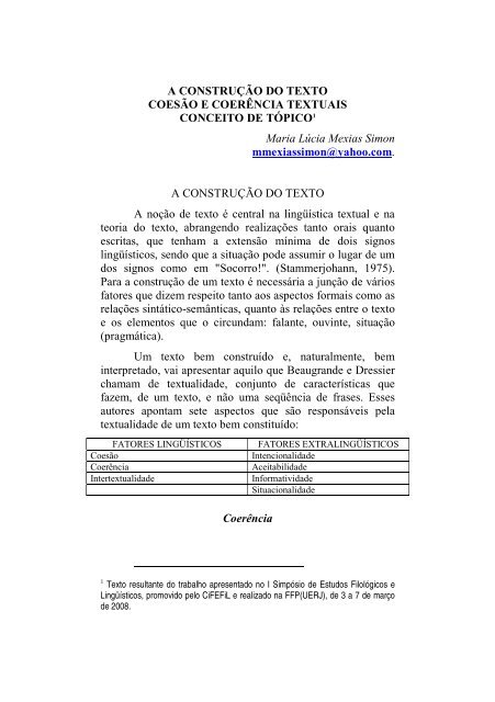 A Construcao Do Texto Coesao E Coerencia Textuais Cifefil