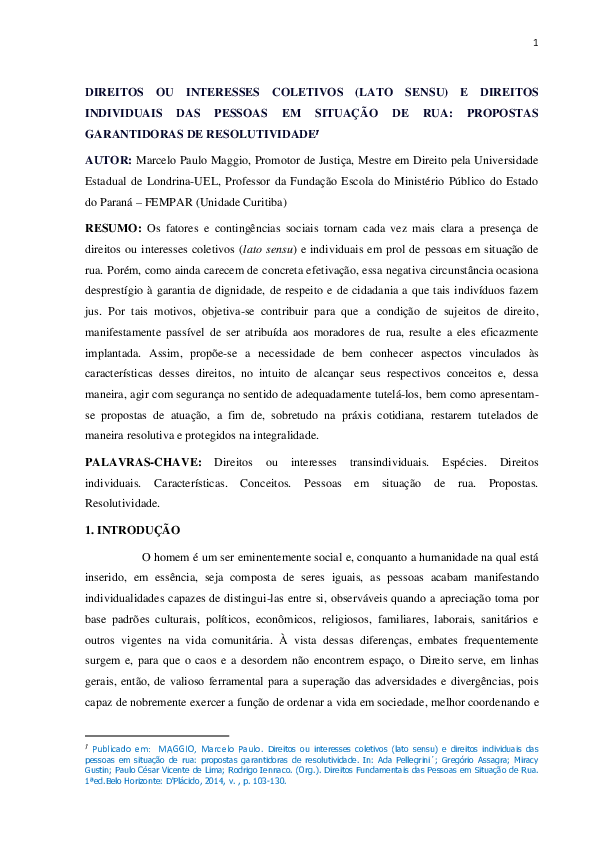 Pdf Direitos Ou Interesses Coletivos Lato Sensu E Direitos