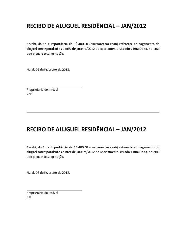 Recibo De Aluguel Residencial Urbano Propriedade Free 30 Day