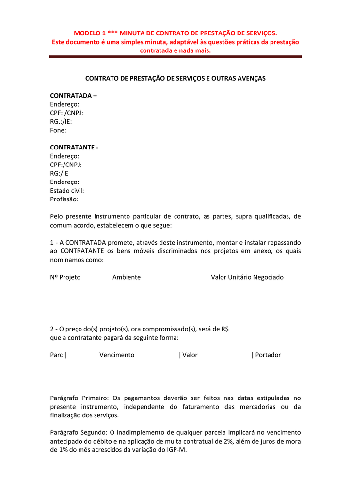 Modelo Contrato De Prestacao De Servicos