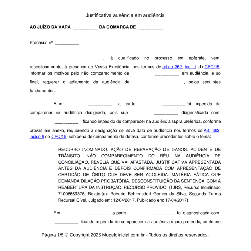 Modelo De Justificativa De Ausencia De Jurado Ao Tribunal Do Juri