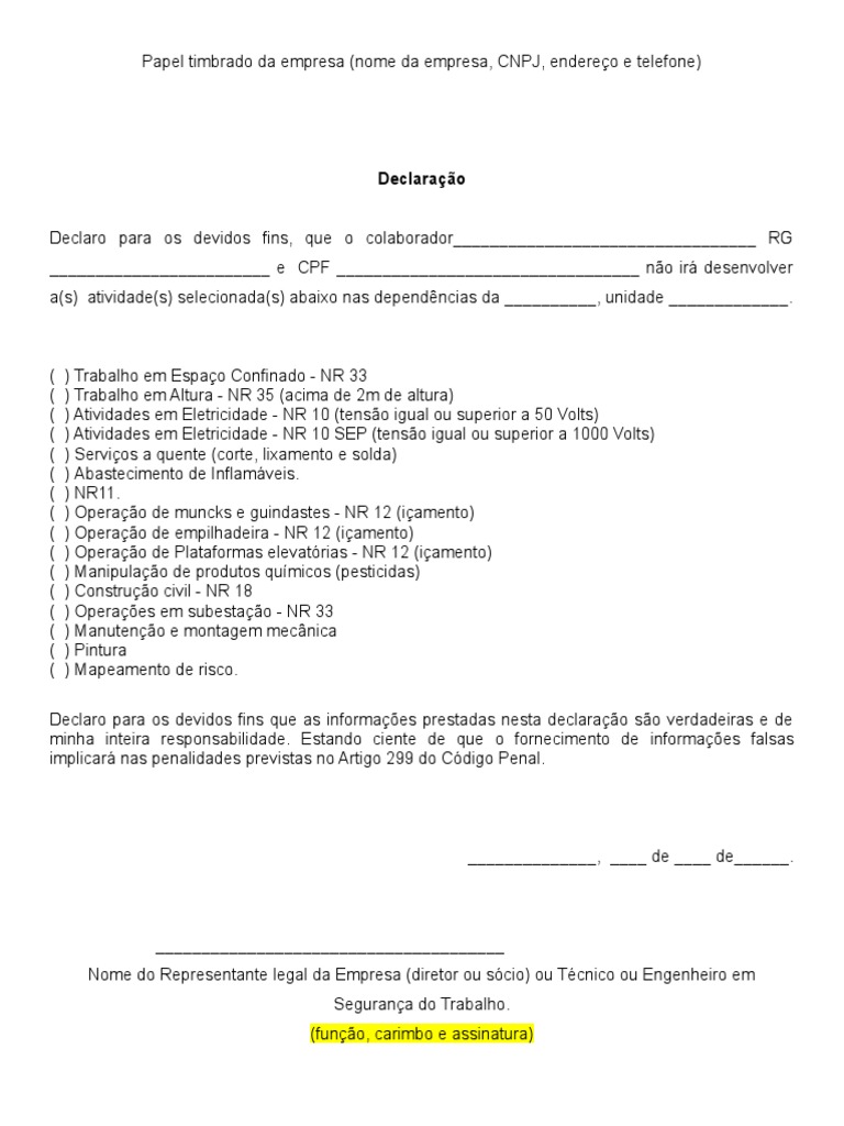Modelo De Declaracao Nao Aplicabilidade Das Nrs Copia