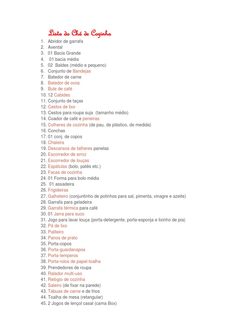 Lista De Compras Para Cha De Casa Nova E Cha De Panela