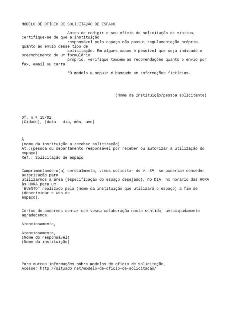 131299126 Modelo De Oficio De Solicitacao De Espaco