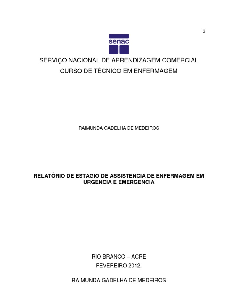 Relatorio De Tecnico De Enfermagem Especializacao Urgencia E