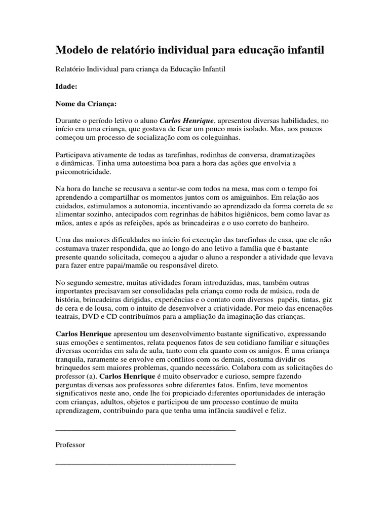 Modelo De Relatorio Individual Para Educacao Infantil 5 Modelos