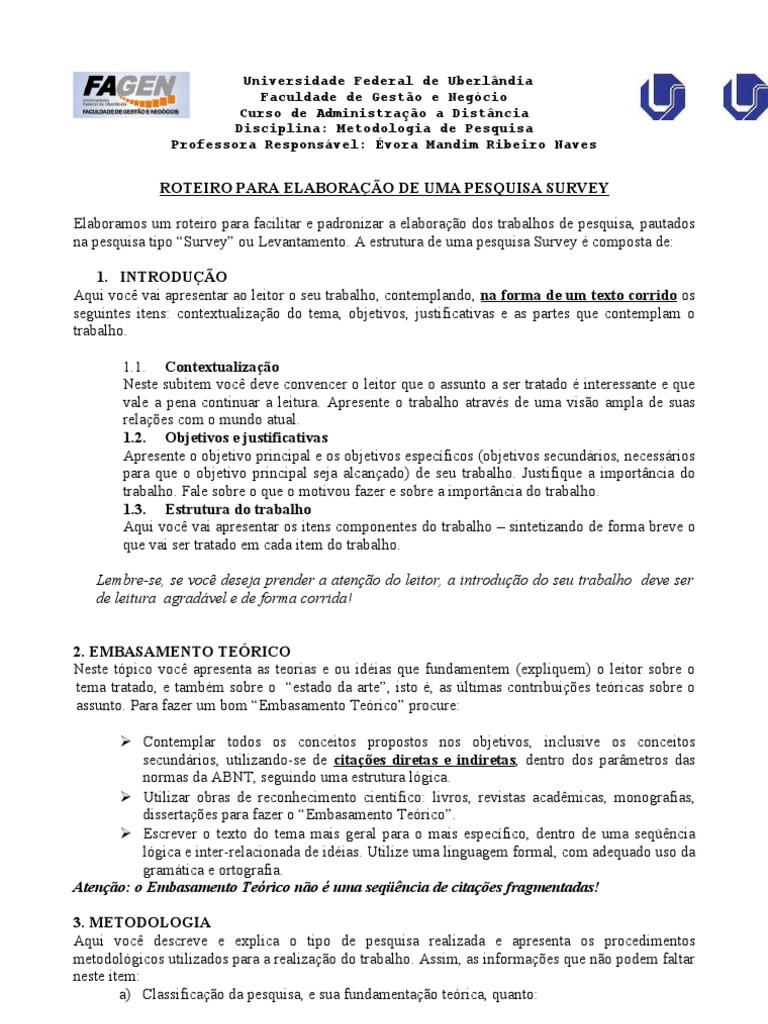 Informações sobre Exemplo De Roteiro De Pesquisa Qualitativa.