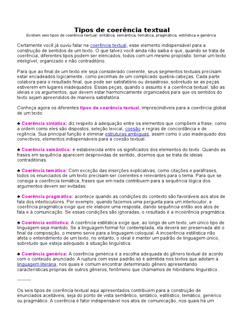 Tipos De Coerencia Textual Semiotica Ciencia Filosofica