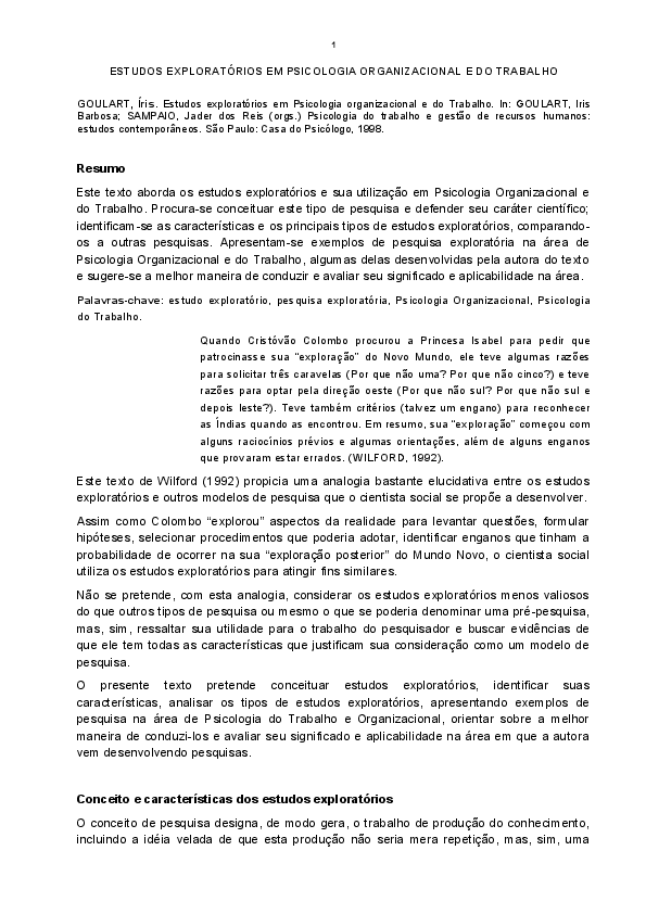 Doc Estudos Exploratorios Em Psicologia Organizacional E Do