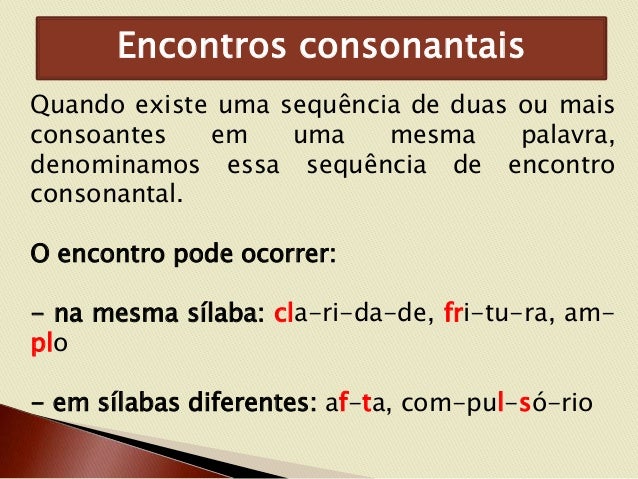 Abaixo estão as informações O Que E Encontro Consonantal Exemplos.