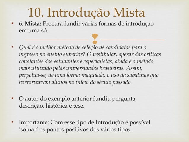 Esse tipo de introdução permite que o autor apresente domínio de uma área de conhecimento de relevância a história o que contribui para o objetivo final de um texto dissertativo argumentativo.