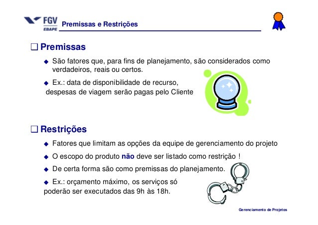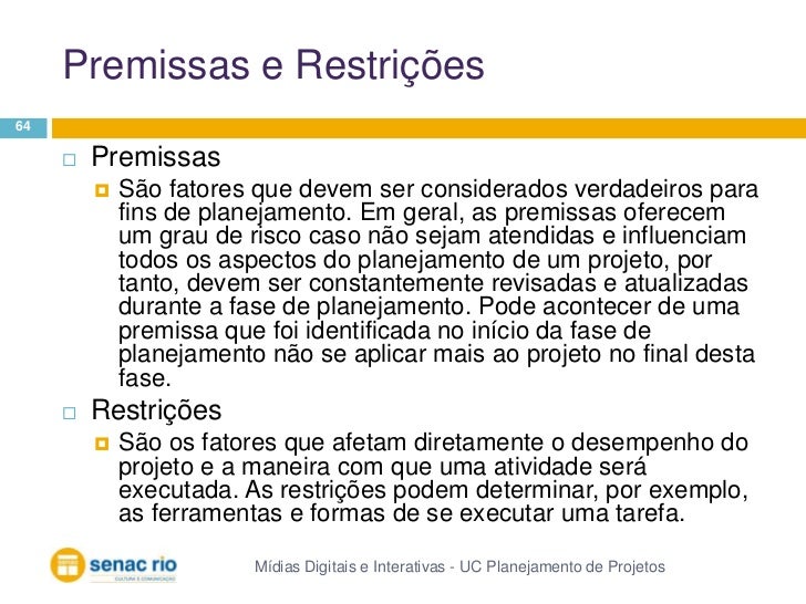Encontre informações completas sobre Premissas E Restrições De Um Projeto Exemplos.