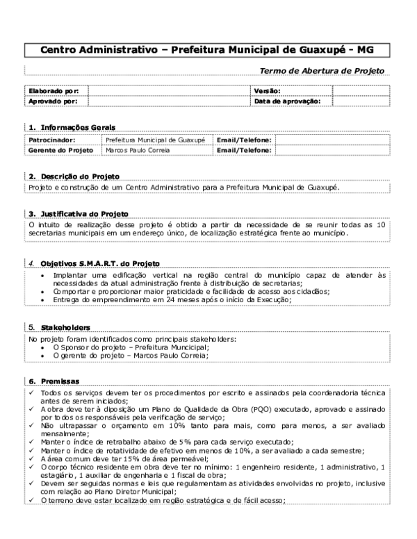 Termo De Abertura Do Projeto 1 Tap Preenchido V 06 Gestao De