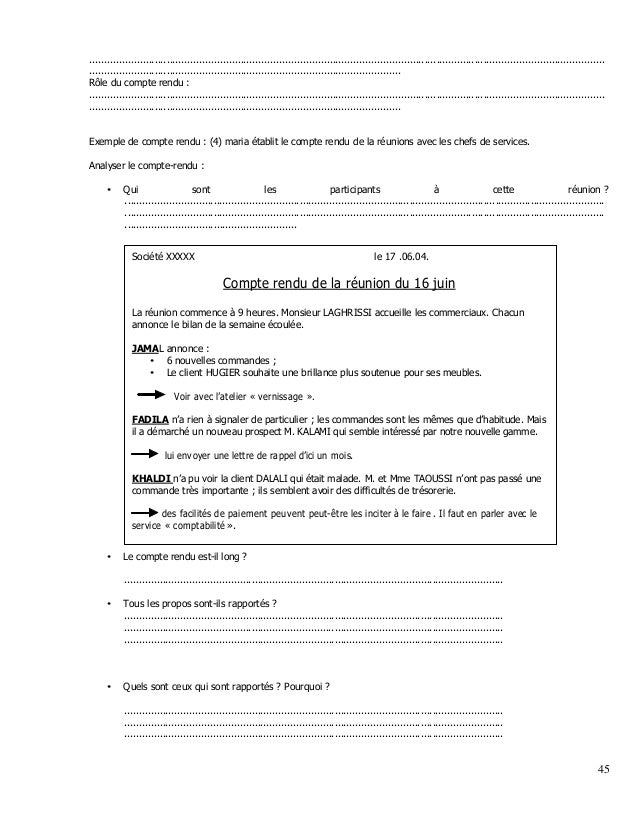 Exemple De Compte Rendu De Reunion