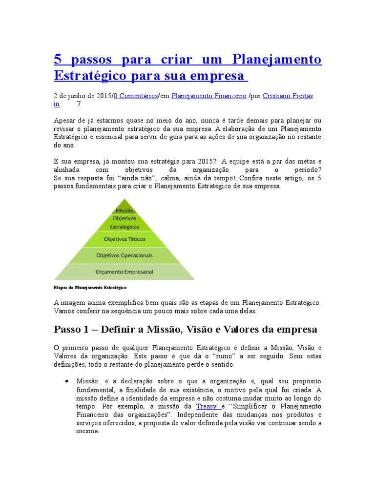 Antes de prosseguir confira mais um exemplo de planejamento estratégico de uma empresa.