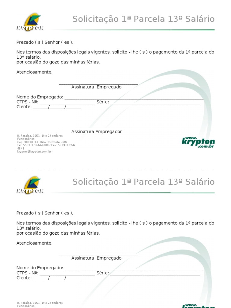 Formulario De Solicitacao Da 1ª Parcela Do 13º Salario Rh