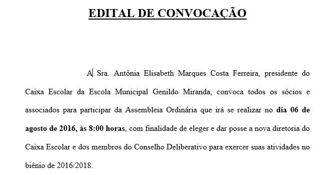 Blog Da Escola Municipal Genildo Miranda Edital De Convocacao