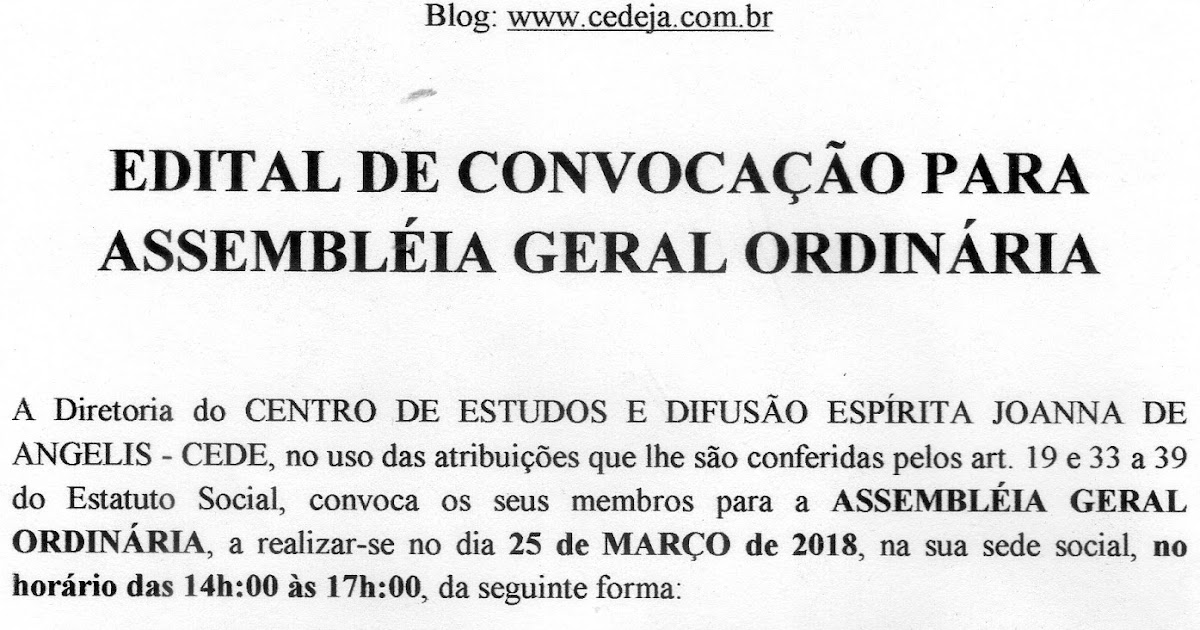 Edital De Convocacao Para Assembleia Geral Ordinaria Centro De