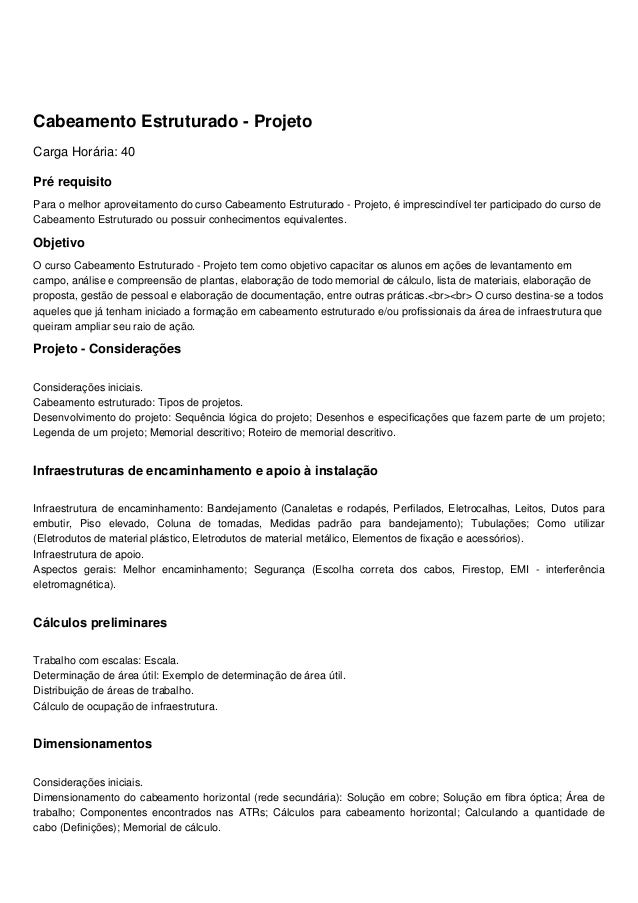 Conteudo Programatico Cabeamento Estruturado Projeto