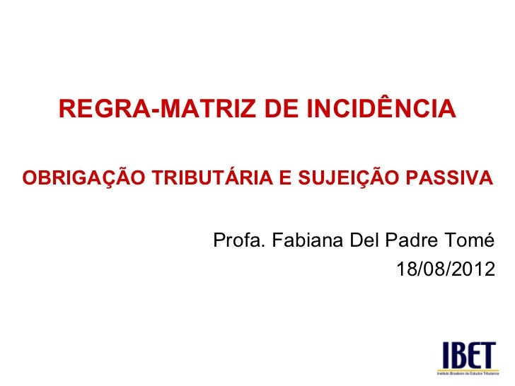Regra Matriz De Incidencia Obrigacao Tributaria E Sujeicao Passiva